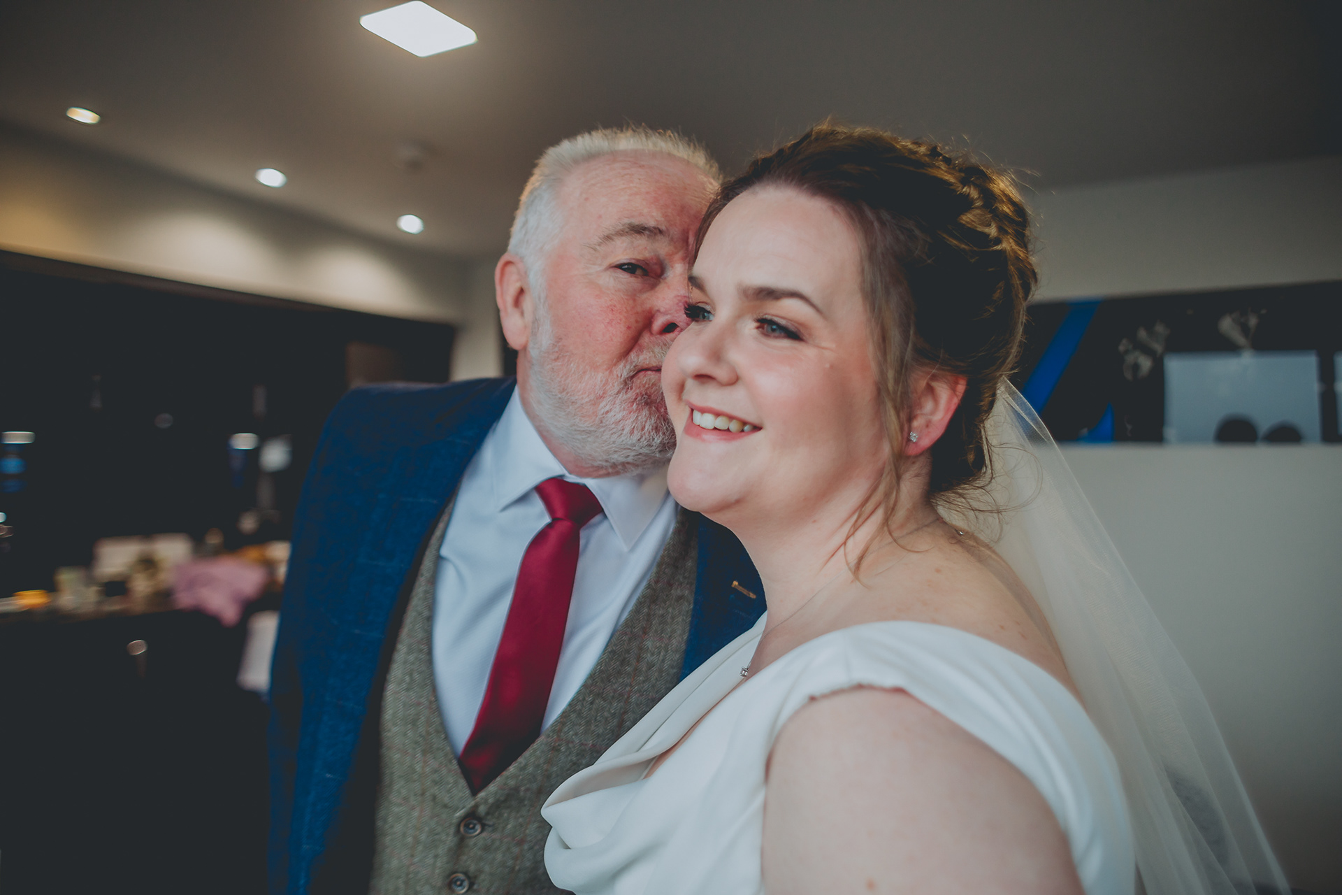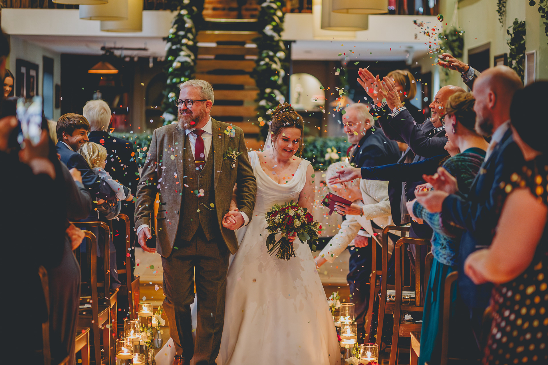 Claire and Ian's day was a very wet one unfortunately but it actually didn't dampen the mood in the slightest. Aside from a little nerves before the ceremony, Claire and Ian had huge smiles on their faces all day long - as did I! It also went with the cosy festive vibes which Claire had I think envisioned since day one. The decor, styled and arranged by Flossies Weddings was absolutely beautiful and brought a tear to Claire's eye when she was first shown into the wedding breakfast room. When I asked Claire at our final meeting before the day, what she was most looking forward to, it was this, seeing the room decorated and all details she had planned come together.