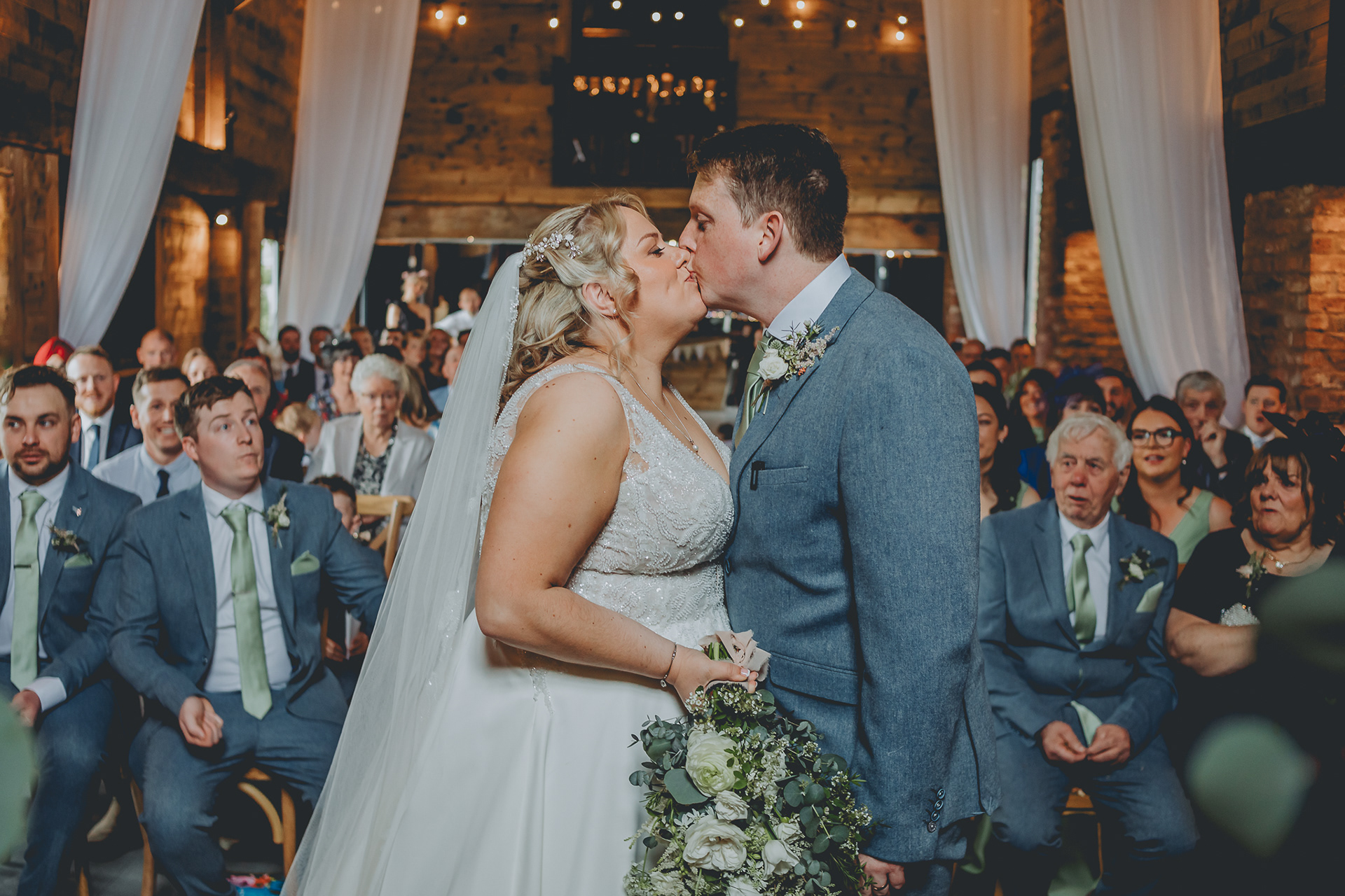 The formula: I arrive in good time to capture candids of the guests arriving, their lovely outfits and the ceremony room filling up. I then head to front of the venue in preparation for the bride's entrance. I like to capture the groom (or partner's) nervous expression as he waits for his bride. I move into the centre briefly to to capture Paige boys and bridesmaids coming down the isle followed by the bride and her father. I stay this side to capture the groom's reaction and there is often something amusing going on with the Father of the Bride at this point too as he hands over his daughter. During the ceremony like to focus in on guests in the audience and their expressions, paying particular attention when the registrar asks if anyone has any just cause! At some stage before the big moments I like to head to the back of the room to get a different perspective, capturing the whole ceremony from afar; the guests, bride and groom. I head back to the front for the ring exchange to capture close up details of the rings and hands and finally the first kiss. I like to get guests reactions in the background behind the couple. I will often ask them to 'whoop!' to create energy and laughter in the room. Then I run up towards the back of the venue and walk back with the Bride and Groom as they head up the isle together as husband and wife! And that's it in a nutshell. I hope you found this helpful.