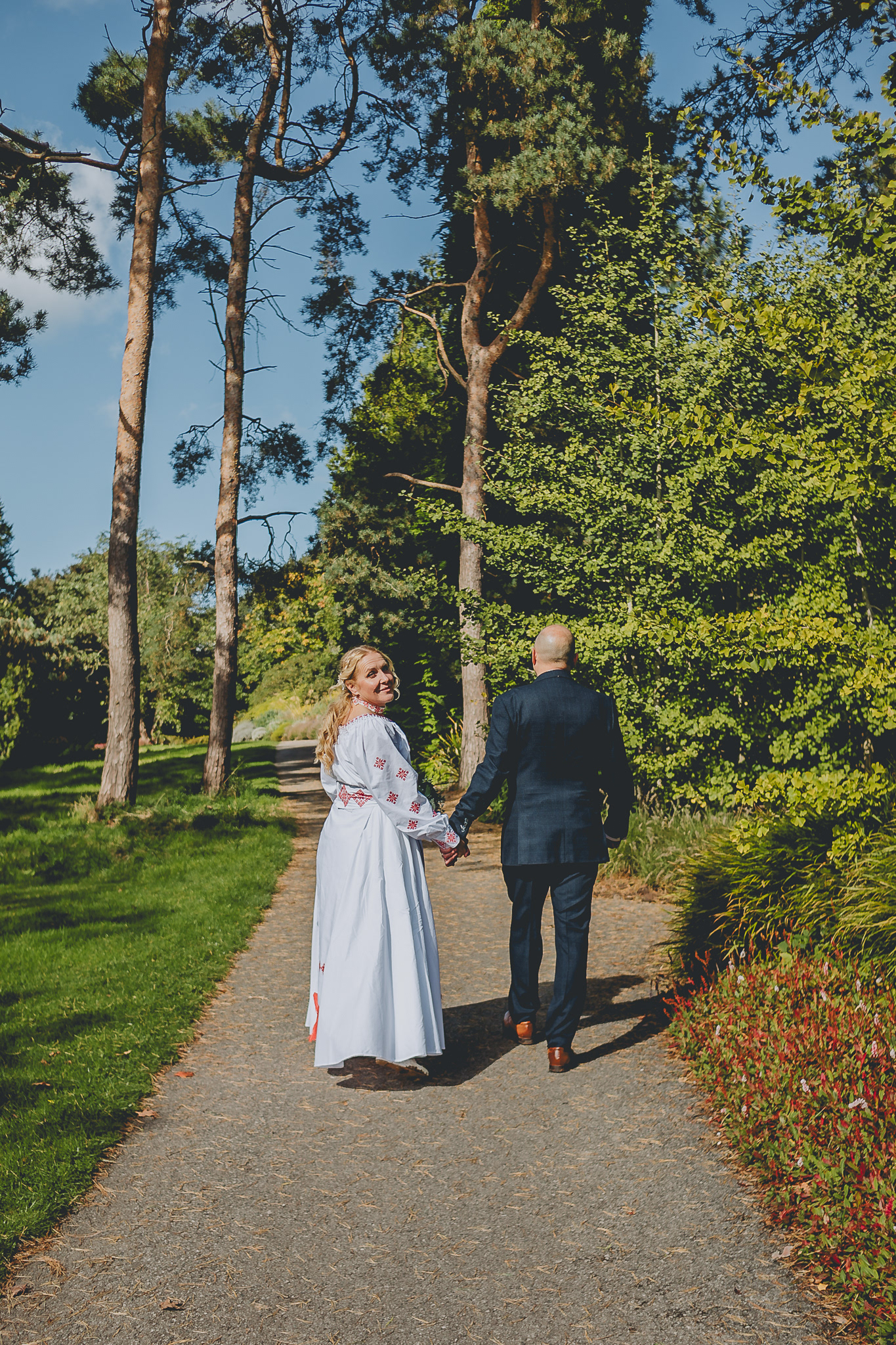 A quintessential English garden wedding at the beautiful Ness Gardens and the sweetest, warmest couple you'd ever wish to meet. If you're looking to have your ceremony outdoors, Ness Gardens is the perfect place. There are so so many options for photos no matter what the season. If you are worried about rain, it won't dampen your day. There are plenty of undercover areas and clear umbrellas can add a lovely touch to wedding party photos. And worst comes to worst they will move your ceremony indoors.