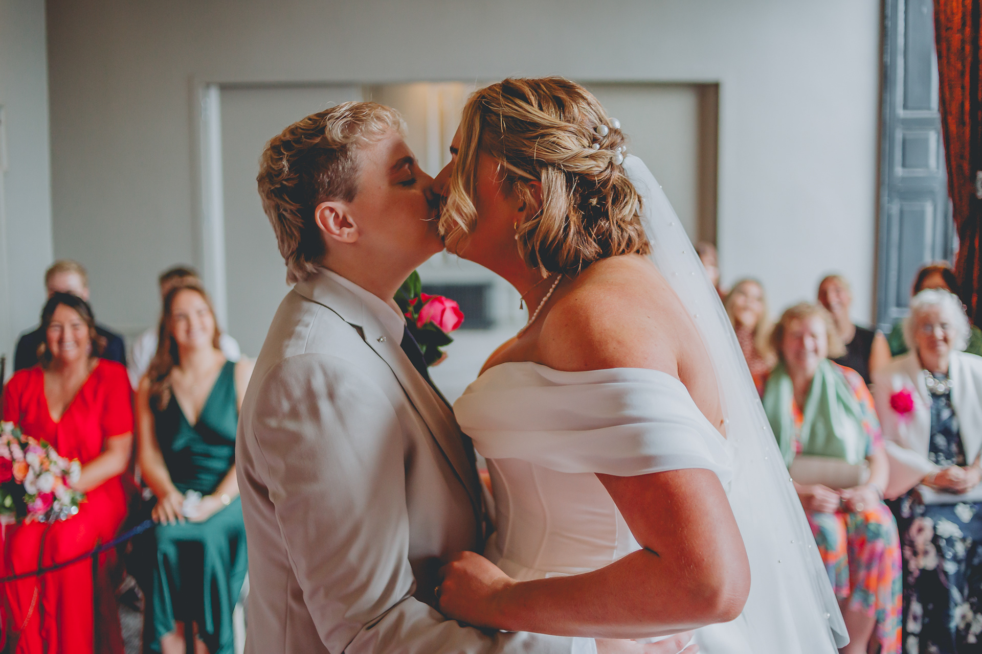 I felt like I'd known Alice and Paige a lifetime by the time it came to wedding number two; one wedding and an engagement shoot later! And it was lovely and intimate family affair. Paige's sister delivered the blessing beautifully and their cute dog Patrick was the ring bearer! Scroll down to see Paige's home made cake (which was incredible!) as well as the quirky Alice in wonderland themed place-settings. Scroll down a bit further to see our fun photoshoot in Chester city centre; involving a stop-off at Five Guys for a milkshake!